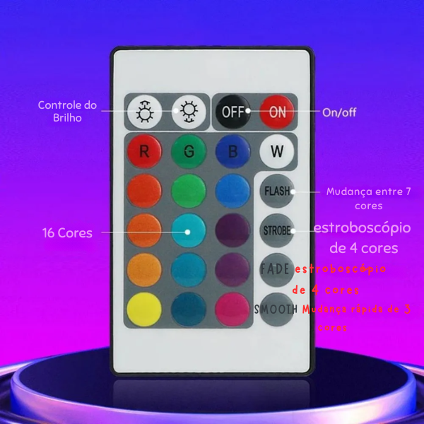 Ideal para quarto, sala, escritório, setup gamer, TV ou até festas.