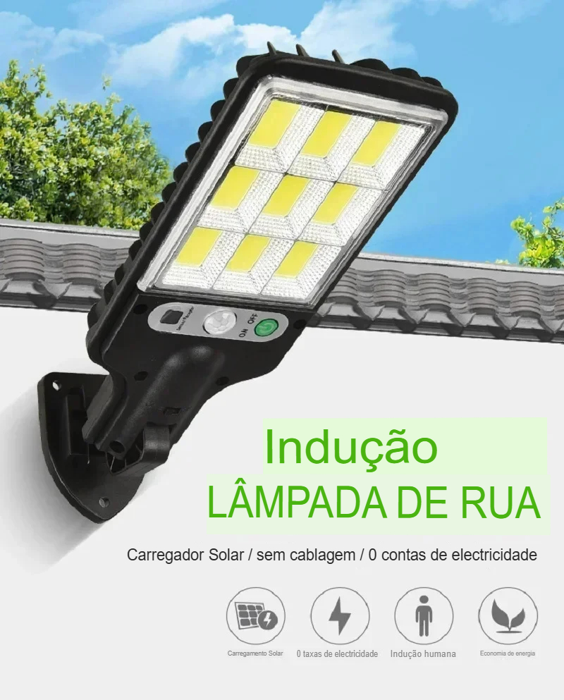 Um sistema de iluminação solar potente que acende automaticamente ao anoitecer, trazendo visibilidade, segurança e valorização estética para áreas externas.