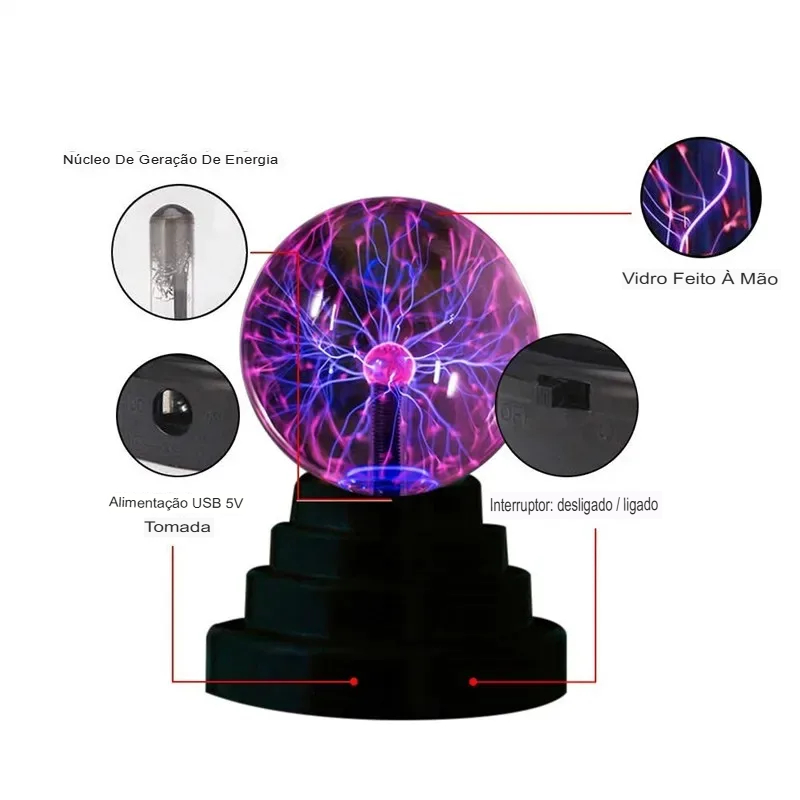 ⚡ Inspirada em fenômenos científicos reais, a bola de plasma proporciona uma experiência visual educativa e envolvente, despertando curiosidade e fascínio.