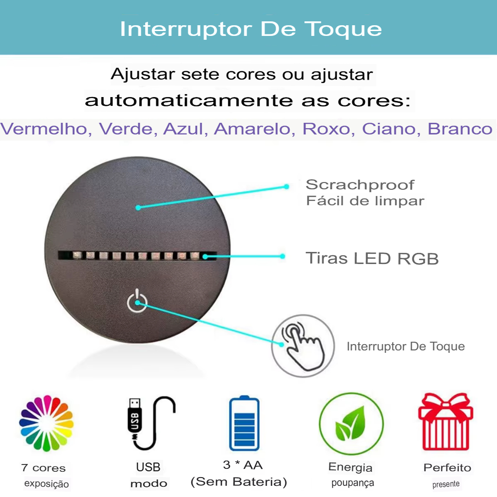 🔄 Produzida em plástico premium no formato cartão PlayStation, conta com sensor touch intuitivo, 7 cores RGB (vermelho, verde, azul, amarelo, roxo, ciano e branco) e modo automático de troca de cores. Alimentação USB 5V contínua (sem baterias), com acabamento resistente e fácil de limpar. Diferente das luminárias comuns, esta recriação entrega efeito visual 3D elegante com fluxo luminoso suave (60–249 lm), ideal para não cansar os olhos.