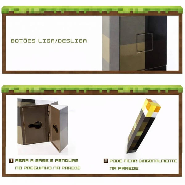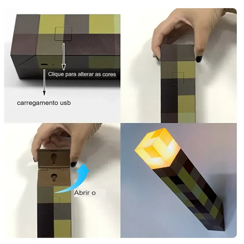 Com LED em tom Warm Light, ela reproduz o visual clássico das tochas pixel, criando: